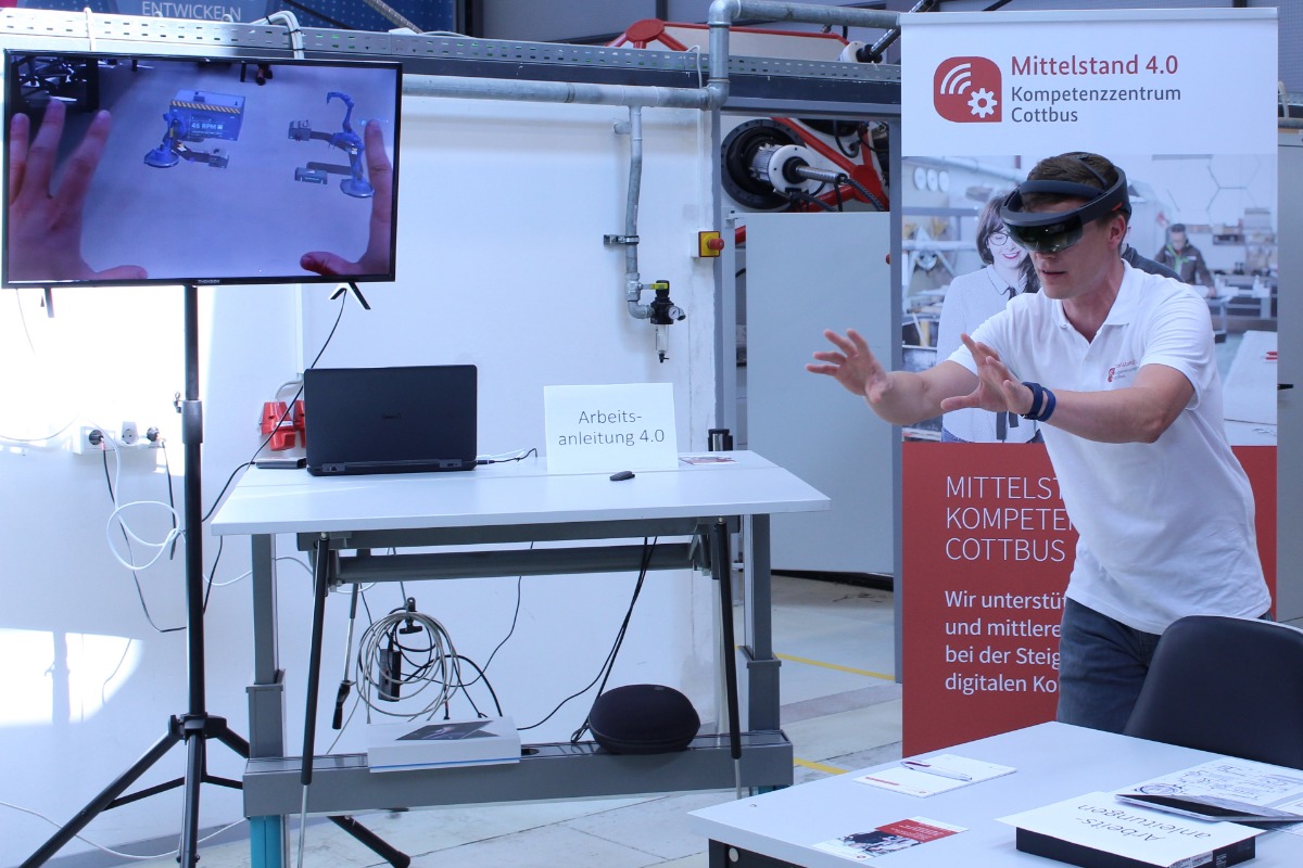 Für die Qualifizierung im Bereich der Assistenzsysteme und Augmented Reality baute die BTU den Demonstrator LTA4Glasses auf. Dieser wird in den jeweiligen Workshops aber auch bei Open-Lab-Days und Demonstratorvorführungen genutzt.