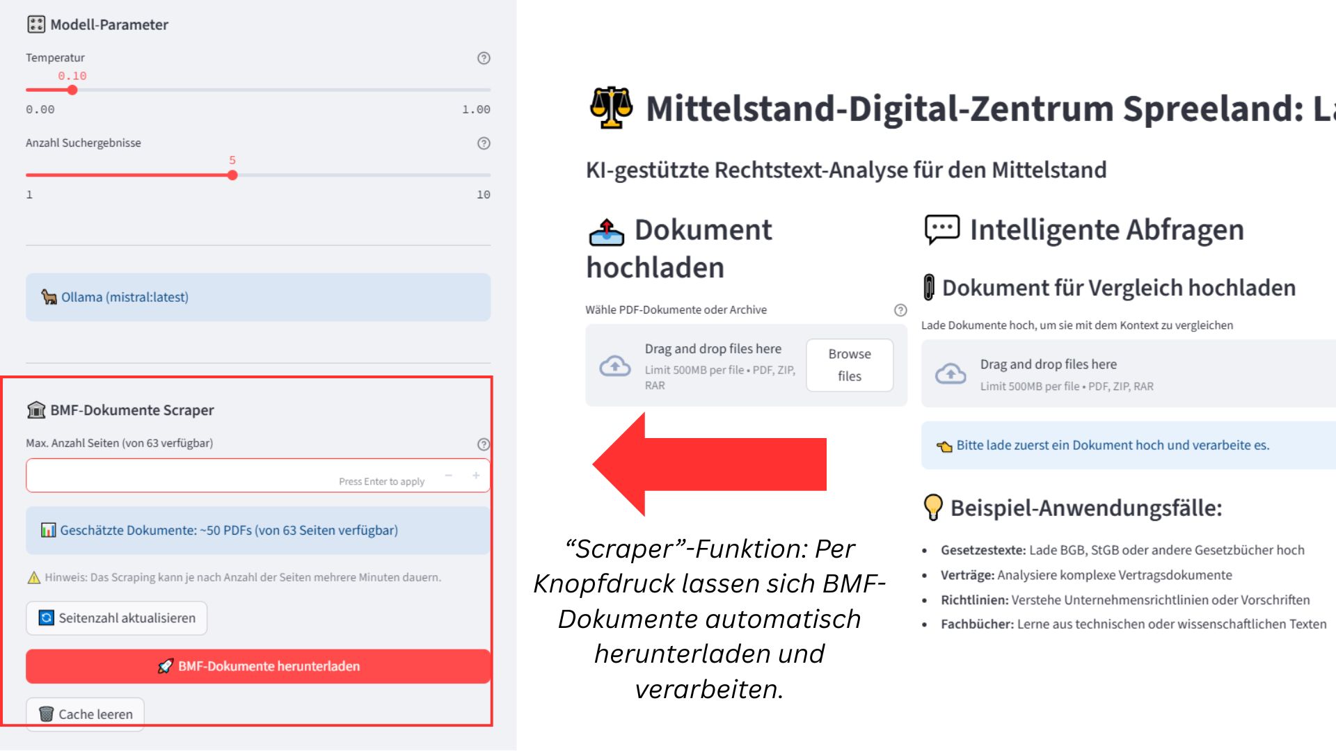Benutzeroberfläche: Die intuitive Streamlit-Oberfläche ermöglicht: