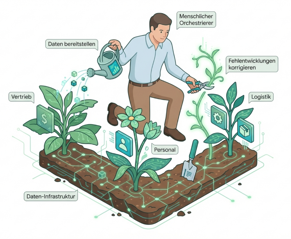 - Sie pflegen den Garten: Sie überwachen das System, greifen bei „Wildwuchs“ (Fehlentwicklungen) korrigierend ein und geben die strategische Richtung vor.