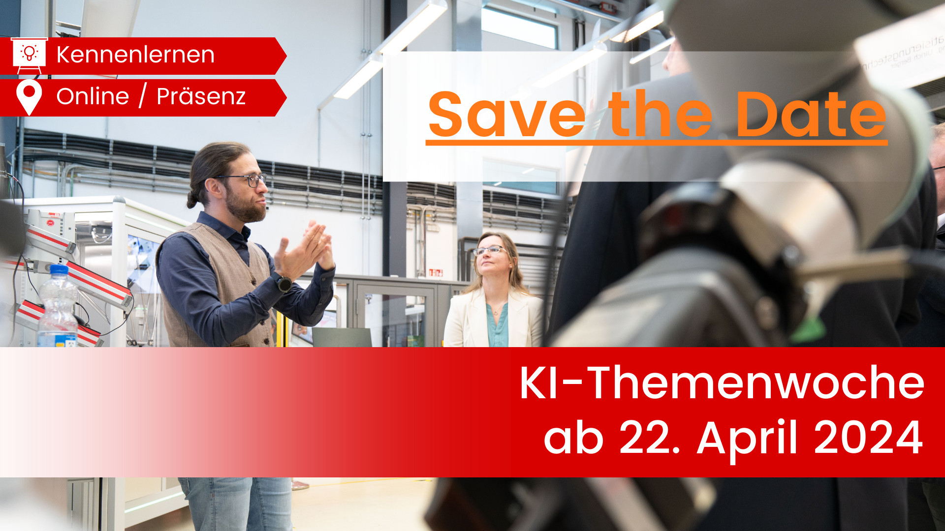 Vom 22. bis 25. April 2024 laden wir Sie zu einer KI-Themenwoche ein, bei der Sie Innovationen für kleine und mittlere Unternehmen entdecken können. Erfahren Sie, wie Künstliche Intelligenz die Zukunft des Marketings gestaltet, tauchen Sie in die Welt der KI-gestützten Konstruktion ein und lernen Sie, wie Chatbots den Kundenservice optimieren und die Kundenbindung stärken können. Das Programm im Detail finden Sie in der Rubrik Veranstaltungen.